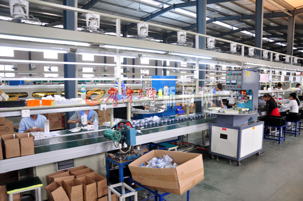 在察看過程中,張社喜時不時地停下腳步,詢問員工的工作情況,碰到員工一時無法解決的問題,他便十分耐心的給員工指導(dǎo)講解,看得出來,張社喜對生產(chǎn)技術(shù)很了解。在貼片車間,張社喜告訴記者,這些加工的設(shè)備都是數(shù)字化程式化的,只需員工在一旁看著就可以,并且設(shè)備速度之快堪比電腦。記者看到機(jī)器飛速的運(yùn)轉(zhuǎn),燈片在機(jī)器飛快運(yùn)轉(zhuǎn)中出來,再由員工進(jìn)行進(jìn)一步的細(xì)化,一位穿著工作服四十歲左右的女員工,手上正十分熟練的對燈片進(jìn)行二次加工。